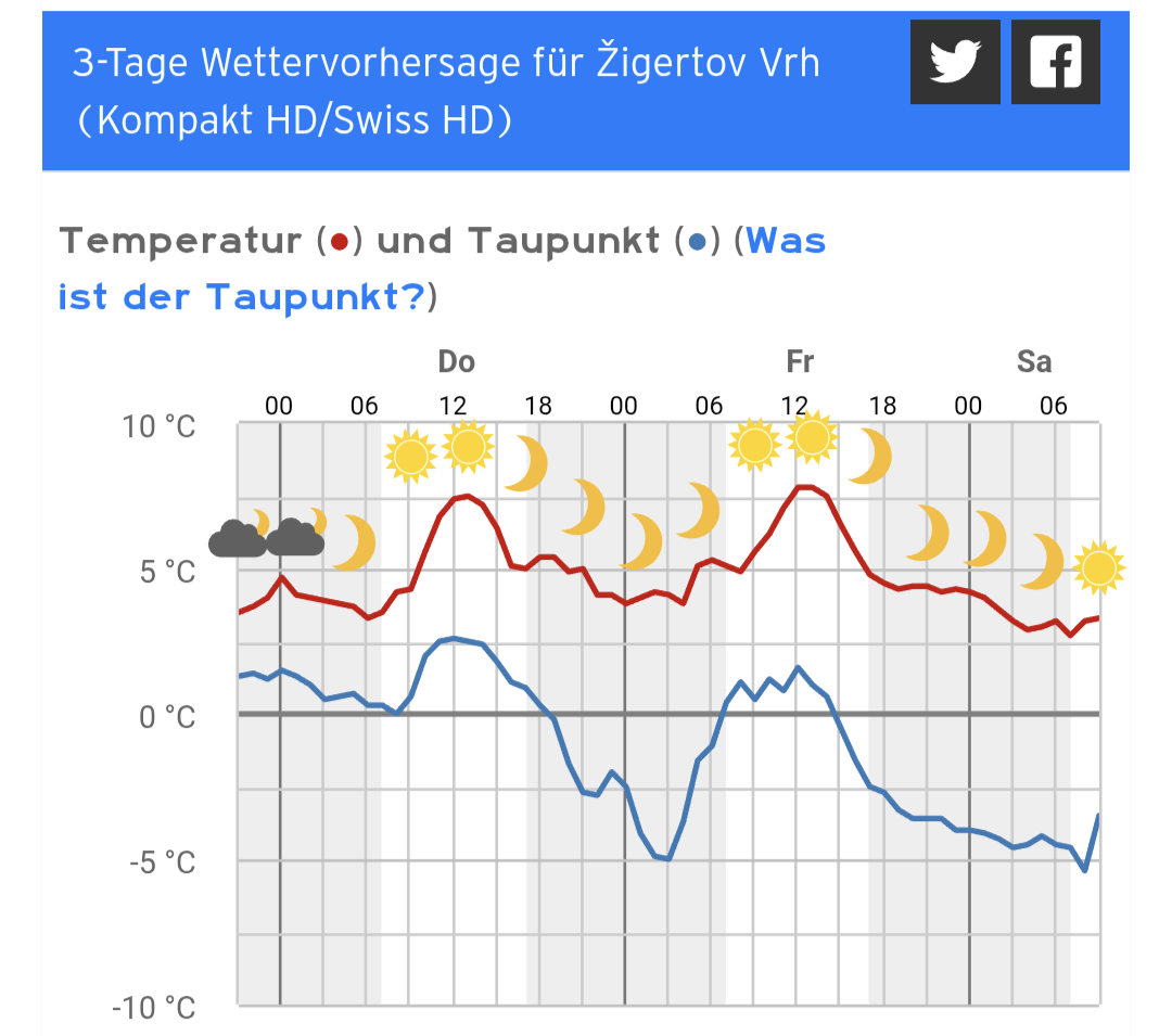 In pa temperature na Žigertovem vrhu, kjer se znova vidi, da bo jutri padla vlažnost.