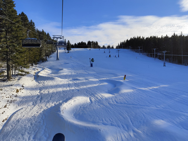 Še moja malenkost s popoldneva danes. Kot pravi Sikt, sneg res dober, 'grifig' in precej utrjen. Sončno, temperature pa so izgleda cel dan vztrajale v minusu.Za razliko od dopoldneva, nekje od druge ure popoldan smučarjev čisto malo. Za prvi vtis te sezone: zelo solidno...
