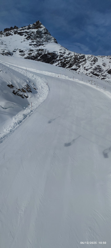 Je pa bila ena zanimivost. Na koncu povezovalne steze od restavracije do GletscherJet-a jim je zgleda zagodel snežni top. Nekaj se je moralo pokvariti oziroma jim je morala počiti cev, saj je bila tam v skoraj celotni širini proge zelo zelo grda ledena ploskev, ki so jo nato razbili z ratrakom, posledično pa je bilo en kup ledenih grud v dolžini 10-20 metrov. No temu območju se je sicer dalo izogniti, če si smučal skrajno levo ali desno po progi do GletscherJeta.