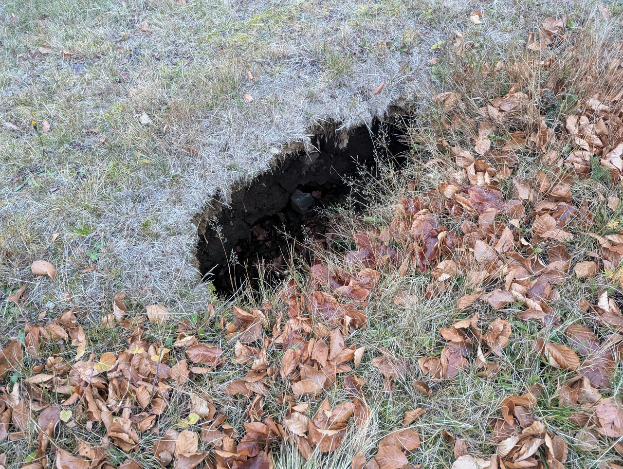 Z recikliranimi omaricami z nekod drugod. Jaški še brez pokrovov, cevovod še brez priključkov. Bolj zanimivo pa se dogaja odzadaj.