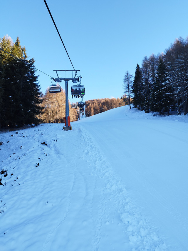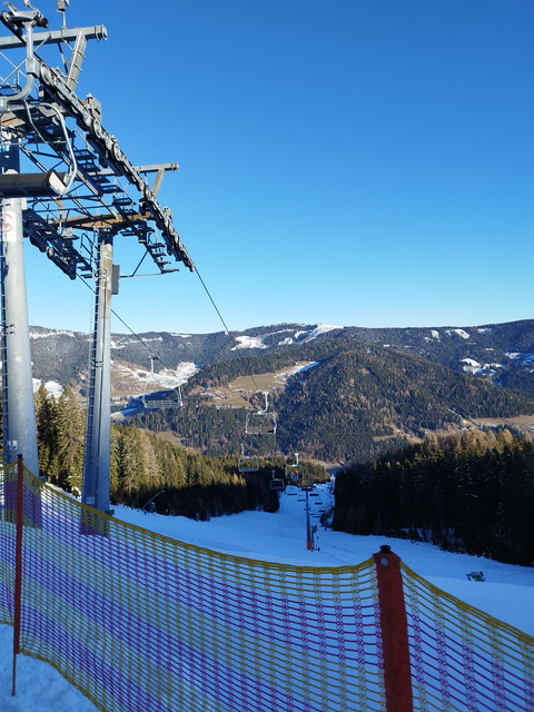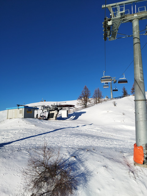 Danes zjutraj naval na gondolo, čakala skoraj pol ure, malo potem še pred sedežnico. Gori še je nato kar razporedili, bila pa je kar gneča na progah. Sneg zjutraj soliden, kasneje vedno bolj zdrsano z ledenimi ploščami, najslabše na Klosterlu. Kamenčkov ni.