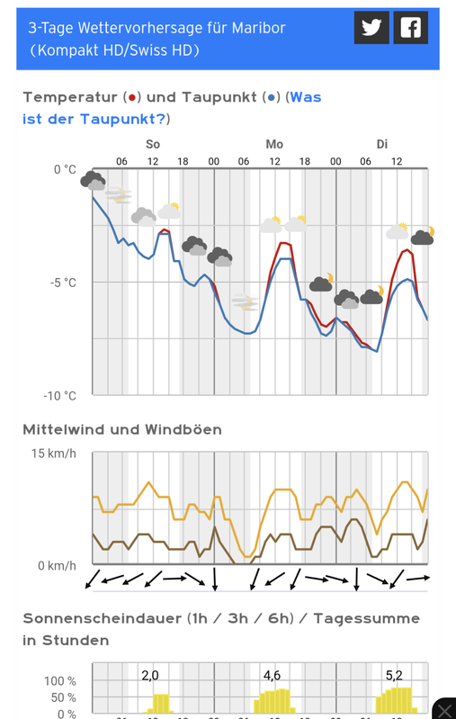@smucar9, kot napovedano, bodo temperature nekoliko višje, bo pa vlažnost nizka. Zjutraj bodo najverjetneje trde proge, ki znajo čez dan spustiti. V dolini se zna prikrasti kaj megle. Zna pa se kakšno kritično mesto na povezavah razširiti, ali pa celo odpreti v smislu prebitja podlage.