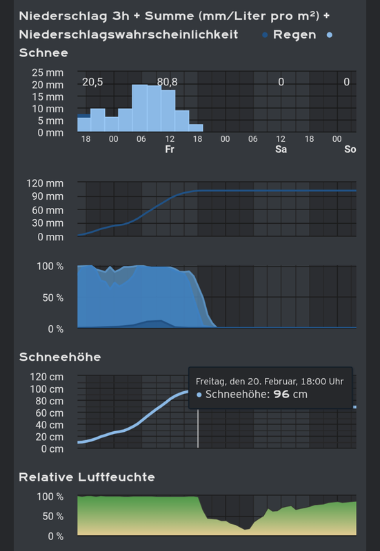 | Hm, kot za božič kaže za jutri in v petek lepo sneženje...torej zaenkrat kaže pol metra na vrhu, ampak se zadeve še vedno hitro spreminjajo. Je pa temperaturno na meji. |