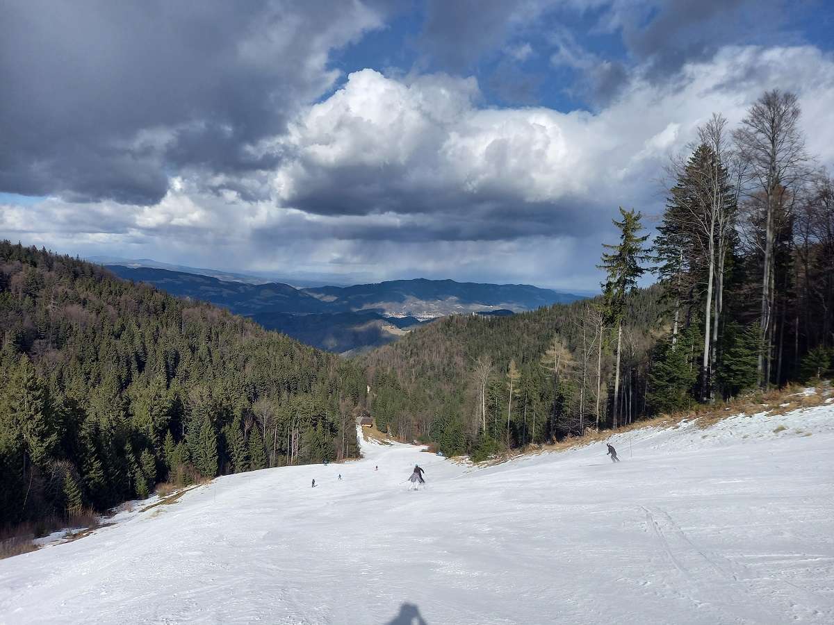 Celo na novih, nezasneženih progah pod sedežnicami je lepo belo, tista pod Pahernikom je zgledala kar solidno prevozna:
