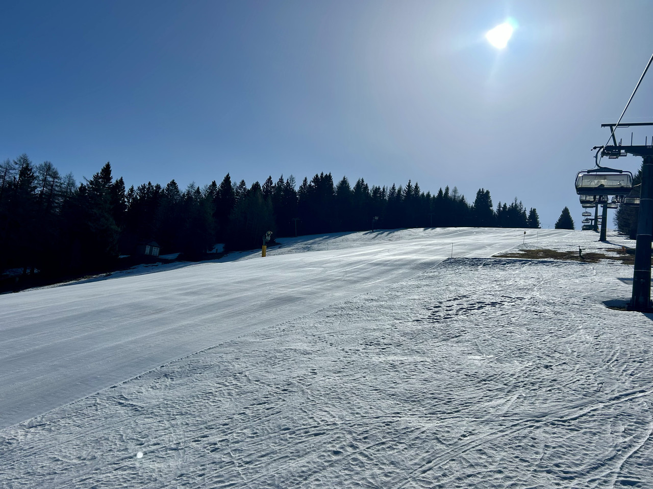 V nedeljo je bila na Cerknem odlična smuka, kljub bolj slabi napovedi vremena. Med oblaki je kukalo sonce, megle ni bilo.