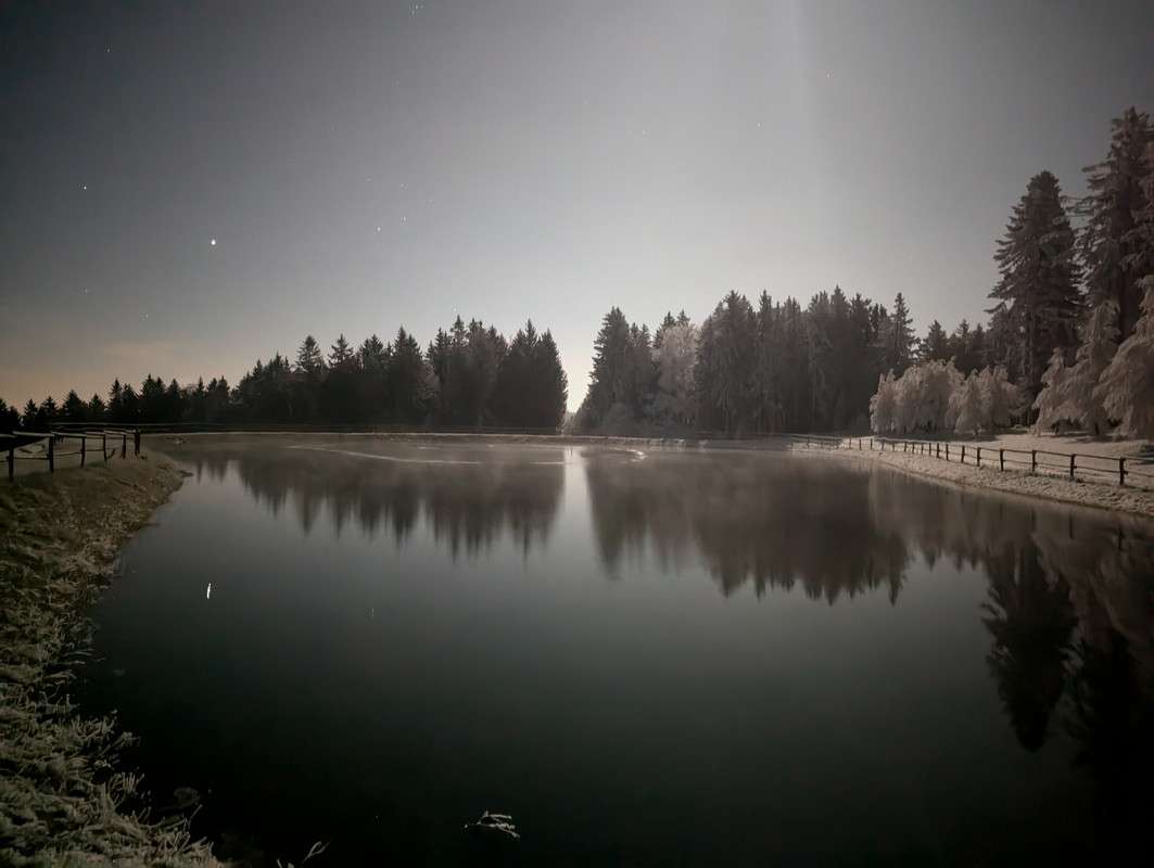 - Voda v jezeru še je precej topla, zato se na sliki dobro vidi izhlapevanje iz jezera. So pa končno zagnali najboljšo hlajenje jezera - z mehurčki! Bravo!