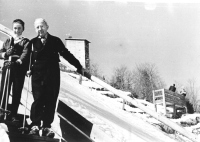 Desno Joso Gorec in levo avtor tega prispevka po Gorčevi rehabilitaciji leta 1954 v Planici.
