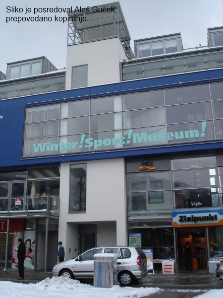 Vsebina članka je avtorsko delo. Prepovedano je kopiranje članka brez dovoljenja avtorja. Vhod v novo zgradbo Zimski športnega muzeja v Mürzzuschlagu, odprte leta 2004, ko je muzej gostil hkrati 3. FIS konferenco zgodovine smučanja. Odprtja se je udeležil tudi znani avstrijski smukač Kaiser Franz Klammer. |  Doprsni kip v središču mesta Mürzzuschlagu pionirja smučanja v Avstriji Maxa Kleinoschega. |  Še drugi pionir smučanja v Avstriji Toni Schruf, Mürzzuschlag. |  Replika švedske smučke iz 3200 let pred našim štetjem. |  Bloška smučka ima vidno mesto. |  Laponske smuči iz 19. stoletja in Sami iz laponskega plemena. |  Avstrijska lilienfeldska vez Mathiasa Zdarskega, razvita iz prvotne iz leta 1896. |  Prva patentirana varnostna smučarska vez Kurioses, 1898, Avstrija, ko se je zadaj kovinska vzmet pri padcu naprej sprostila. Kako pa je zdrsnil čevelj iz prednje usnjene kapice, pa raje nisem poskusil. |  Enostavna usnjena stremena iz začetka 19. stoletja. |  Desno Bilgerijeva vez po 1900, Avstrija. |  Imitacija zaledenelega jezera in drsalke v starem muzeju v Mürzzuschlagu. |  Lesena ljudska drsalka iz 1930. |  Poleti otroški voziček na koleščkih, na sliki pozimi na sanicah. |  Slovenski obisk 28. 11. 1997 na povabilo muzeja v Mürzzuschlagu ob 50. letnici obstoja muzeja. Z leve: direktor Salzburškega smučarskega muzeja v Werfenwengu blizu Bischofshofna Hans Müller, poznavalec zgodovine smučanja, posebej Planice in Blok Svetozar Guček razlaga bloško smučanje ob kipcu avtorja Mihe Kača, kustos muzeja v Mürzzuschlagu mag. Hannes Nothnagl in Marjan Batagelj, soustanovitelj smučarske skupine po starem Edmund Čibej in Smučarji po starem skupine Batagelj. Borut Batagelj in Aleš Guček nista na sliki, a sta ob strani napeto vlekla na ušesa sprehod po zgodovini smučanja in pobirala drobtine z bogatinove mize. |  Desno mag Hannes Nothnagl sprejema iz rok Aleša Gučka darilo za muzej v Mürzzuschlagu ELAN vojaško smučko iz leta 1974 z vezjo JNA (prej naziv Antigips, patent dr. France Avčin, 1963). V zameno je Nothnagl podaril nekaj parov smučarskih vezi za dopolnitev 1. slovenske smučarske zbirke. |  Med enim številnih mojih obiskov Mürzzuschlaga sem podaril star celuloidni 16 mm nemi film Avstrijca prof. Stefana Kruckenhauserja s posnetki avstrijske šole smučanja iz leta 1956. Film je bil posnet v komercialne namene za javna predvajanja kot reklama za avstrijski način smučanja. Meni ga je podaril bivši učitelj smučanja in prvi slovenski biomehanik Janez Spindler, ki je emigriral v ZDA zaradi montiranih procesov proti njegovi tete Albini Vodetovi in izvajali pritiske nanj. Film sem hotel podariti arhivu TV Slovenija, če mi ga presnamejo na VHS kaseto. Tedanjemu uredniku športa na TV Slovenija Igorju E. Bergantu se to ni zdelo zanimivo, vprašljivo tudi avtorstvo, čeprav je bil film narejen, kot navajam zgoraj. Film je bil nem, da so lahko v različnih jezikih po svetu poznavalci komentirali nasprotno sukanje ramen. Za športnega novinarja in urednika so bile v smučanju pač bolj pomembne zadevice, kot na primer, katera smučarka ima za maskoto medvedka in kateri ljubljeni fant jo čaka na cilju. Film sem dal presneti preko Smučarske zveze Slovenije, ki je plačala kar velike stroške, original pa podaril Zimsko športnemu muzeju v Mürzzuschlagu, ki so ga sprejeli kot svetinjo. Avstrijski film pač naj pristane v Avstriji, če imamo mi mačehovski odnos. Sposojenega iz Avstrije so ga predvajali tudi pri nas po letu 1958. |  Pa kje je našel kolar drevo s takšnimi letnicami, da je bila krivina smuke bolj trpežna zaradi gostote in oblike letnic in se zlahka zlomila? |  Prostorna notranjščina muzeja. |  Mala smučarska koča stoji znotraj muzeja, kjer se lahko usede večja skupina za klepetanje o zimskih športih in tudi zalije zgodovinske smučine, piruete in bob steze s šilcem zgodovinskega štajerskega šnopsa. |  Ne manjkajo številne sani in stari leseni bobi. |  Starodavni pripomočki za mazanje smuči visijo kar v zraku. |  Alpski tekmovalec iz Senegala je podaril svojo opremo muzeju. Nekateri tudi Muzeju športa v Ljubljani ali Zimsko športnemu muzeju podarijo del svoje športne opreme, saj vedo, če to darujejo so obeleženi in opaženi. Drugi naj pač pestujejo svoje zaklade doma, daleč od javnosti. |  Iglu je prava zabava za otroke, ki lezejo noter in ven, kukajo skozi okna in poslušajo od daleč hrumeče zvoke virtuelnih plazov. |  V osvetljenih vitrinah so razstavljeni dragoceni manjši eksponati. |  Kmetje so dokazano v 16. stoletju marsikje v Avstriji pozimi povezali med seboj dve zelo široki deski s krivino ali celo eno samo še širšo, podobnimi smučkam, čeprav jih niso poznali. Na deski so privezali veliko kopico sena in vleki tovor z vrvicami, ki so bile privezane skozi luknji na krivinah. Morda so celo smučali, brez dokaza, kot kaže podoba na sliki. |  Skandinavski severni in južni tip (krajše) starejših smuči ter krplje, ki so bile predhodnice smuči. |  Smučarski motivi med obema vojnama, kot jih je videl umetnik. |  Avstrijski alpski reprezentant iz okoli 1960. |  Mešana avstrijsko – slovenska skupina smučarjev po starem na prireditvi EMAUS na Kaninu leta 2003. Nekaj imen: spredaj v sredi čepi Borut Batagelj, danes doktor zgodovinskih znanosti, prvi, ki je v Sloveniji doktoriral iz zgodovine smučanja, levo zraven njega mag. Hannes Nothnagl, kustos muzej v Mürzzuschlagu, stoje z leve: Aleš Guček in nato člani skupine Batagelj oče Marjan, nečakinja Petra, sin Andrej ter svetovalec zgodovinske smučarske opreme Svetozar Guček. | | | |