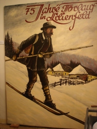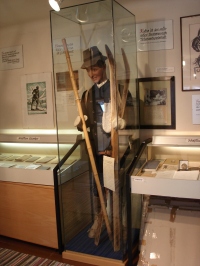 Lilienfeldske smuči in maketa hriba, kjer je smučar Zdarsky.