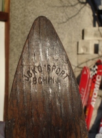 Vrhovi kolcev smučarjev-lovcev, s katerimi so se odrivali naprej. Zgornji deli so bili ali iz rogov severnih jelenov ali oblike velike žlice ali celo vej, da so se z njimi odrivali v globokem snegu. Na spodnjem koncu pa je bila konica, ki so jo zapikovali v trši sneg. |  Že prej omenjeno mazanje z nanašanjem debelejšega sloja maže s čopičem je bilo v praksi pri alpskih smučarjih, ko je bil sneg mehkejši, moker ali spomladanski sren ali srenec. Z likanjem tankega nanosa maže s špiritnim likalnikom pa je bilo primerno za trše vrste snega ali celo malo poledenelega, saj se sneg ni toliko »zarezal« v mažo in oviral drsenja. Mažo je bilo treba po likanju ohladiti zunaj in nato s strgalko odstraniti debelejše in negladke sloje (oboje po drugi svetovni vojni vse do okoli leta 1980). |  Sondre Norheim, doma iz zaselka Øverbø nad Morgedalom v pokrajini Telemark na Norveškem, velja za »očeta« smučanja telemark (od 1870 do 1890). Bil je večkratni prvak v skokih na tekmah v Kristianiji (današnje Oslo), do kamor je potoval 300 km na smučeh in se domov vrnil s srebrnimi pokali, ki jih je prodal, da je kupil krompir in tako preživljal družino. Naredil si je svoje pleteno streme, ki je za razliko od prejšnjega imel daljšo petno pletenico, ki jo je nataknil nad peto čevlja in s tem pripomogel, da čevelj ni zlahka zdrsnil iz prstne pletenice. |