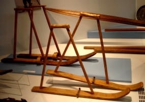 V Avstriji živeči slikar Mathias Zdarsky je leta 1896 »izumil« alpski plužni način smučanja. Bil je goreč zagovornik uporabe enega samega kolca za oporo med smučanjem. Avstrijski poročnik Georg Bilgeri je naredil korak naprej in je biol pristaš tako uporabe enega kolca kot dveh (1906). Na sliki Bilgerijeva sestavljiva in razstavljiva smučarska palica. Zdarsky je Bilgerija ostro napadal zaradi uporabe dveh palic, patenta njegovih vezi, podobnih Zdarskyjevim in pa zaradi zagovarjanja tako telemark kot alpske tehnike. |  Lesene smučke so se v težkem snegu in pri smučarjevih padcih hitro zlomile. Na smučarskih turah je zato prav prišla rezervna krivina, ki jo je smučar namestil na prednji zlomljeni del smučke in za silo nadaljeval turo. |  Vsi tekmovalci in odborniki so na zimskih olimpijskih igrah leta 1936 v nemškem Garmisch-Partenkirchnu dobili v spomin pivski vrček. Norveški stari smučarji so pred tekmovanji v teku na daljavo pred startom močno potegnili tobak v pipi ali cigarete in popili kar dobro količino piva, saj so trdili, da ti dve »dobrini« pomagata, da tekmovalec krepkeje zajema zrak med napornim tekom. |