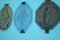 Po laponskih bogovih, zaščitnikih smučanja, so tudi na prelazu Svetega Bernarda tamkajšnji menihi prevzeli zaščito smučarjev. Na enem obesku je menih z znanim reševalnim psom bernardincem.
