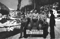 Naša alpska reprezentanca (z leve): Jože Ilija (SK Enotnost, Ljubljana), Franc Cvenkelj (SK Prešeren, Radovljica), Slava Zupančič (SK Triglav, Kranj), Ludvik Dornik (SK Tržič), zvezni trener Franci Čop (SK Branik, Maribor).