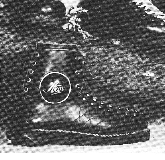 Ročno izdelani usnjeni alpski tekmovalni čevelj Strolz, Lech, Avstrija, 1960.
