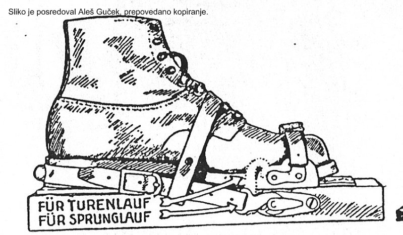 pozabil sem napisati za sliko 26 B Rudi Finžgar, "planiški junak", kot smo mu radi rekli, je kot direktor tovarne ELAN zasnoval otroško streme RU-FI (Rudi Finžgar). To poceni streme je bilo dostopno vsem otrokom, ki so radi smučali. Žasl je bila kakovost uisnja slaba, zato se je petna stremenica kaj hitro raztegnila pod vplivom vlage in padala s pete čevlja (okoli 1950).