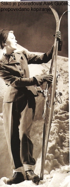 Za smučanje sicer neprimerna oblačila, kar dokazuje, da je moda oblačenja prodrla tudi na področje smučanja (1930), saj je izgled prevladal praktičnost. Seveda le za določen sloj.