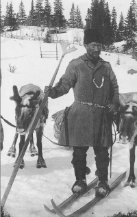 Laponski ljudski smučar s Švedske okoli 1900.