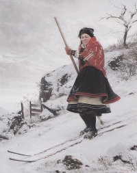 Norvežan Carl Sundt-Hansen (1841-1907) je upodobil domačo smučarko iz Setesdala na Norveškem (okoli 1890).