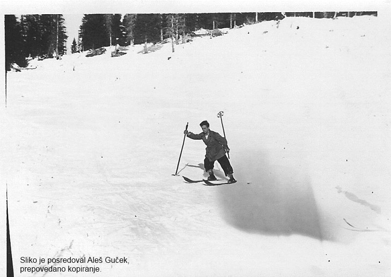 Neznani slovenski tekmovalec pred drugo svetovno vojno v Bohinju na tekmi slaloma, ko že zelo zgodaj obvaduje tehniko napsrotnega skunja ramen. Verjetno ali skoraj zagotovo ni vedel za Zeso, pa je vseeno čutil, kaj je bolj koristno med smučanjem.