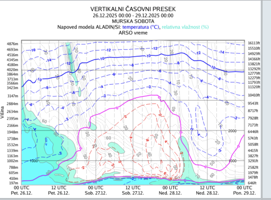 In pa za višino Areha. Jutri nekaj pozitivnih temperatur, a nizke vlažnosti, tako da ne bo hudega. V nedeljo pa osušitev in pogoji za zasneževanje.